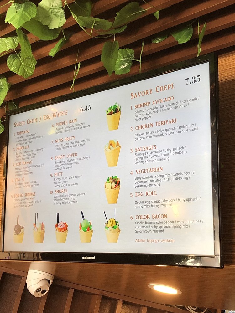 “ I love crepes and this place got me hooked. I got the sweet mojollia crepe which was strawberry, banana, kiwi, Nutella, chocolate syrup, and cookies cream ice cream for $5.95 plus tax. I substituted raspberry for kiwi. This place was cheaper than other places I have been to. Parking is limited because the store is located on the main road and it's usually busy in this area. There's a 7 train that stops here as well. The size of the crepe was bigger than expected to the point I shared it with my brother since I was unable to finish it on my own. They displayed different kinds of crepes in the window which is pretty much same as other crepe stores. Next time I shall try the savory crepes can't wait!! They have boba drinks, hot drinks, shakes, I sslush, milk shake and fried ice cream as well so don't think it's limited to just crepes. They updated all their prices now, so the crepes are $6.45 instead of $5.95!!! ”