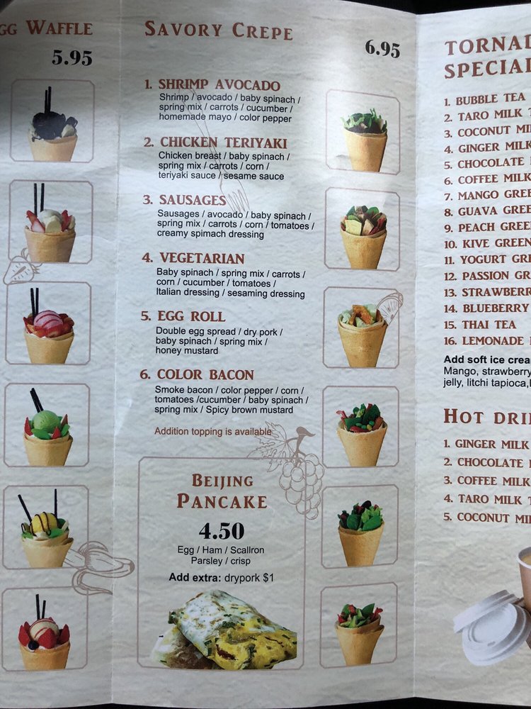 Overall, Tornado Crepe stands out for its delicious food, friendly service, and inviting atmosphere. If you're in the mood for a unique and satisfying dining experience, be sure to check out this hidden gem in Jackson Heights.